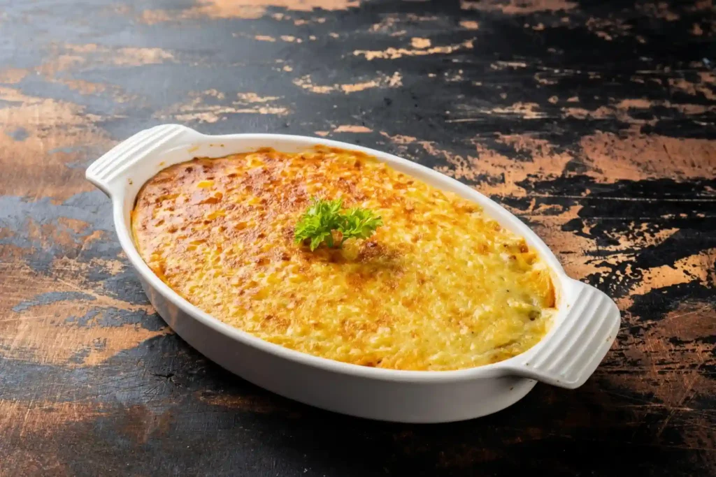 O Bacalhau ao Zé do Pipo é um clássico que combina lascas suculentas de bacalhau com a cremosidade do purê de batatas, finalizado com uma camada dourada de maionese e azeitonas pretas, resultando em um prato marcante, reconfortante e perfeito para ocasiões especiais como Páscoa, Natal e almoços em família.