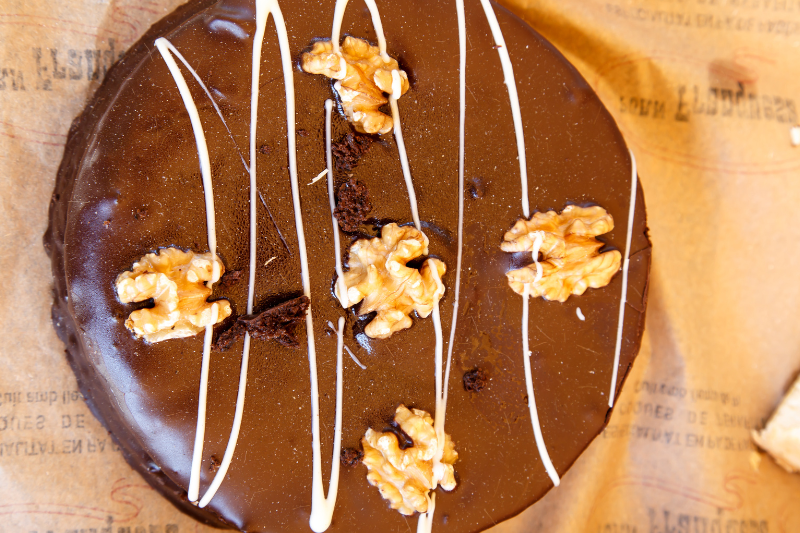 5. Com o bolo já frio, aplicar o trufado amargo por cima como uma cobertura. E prontinho!