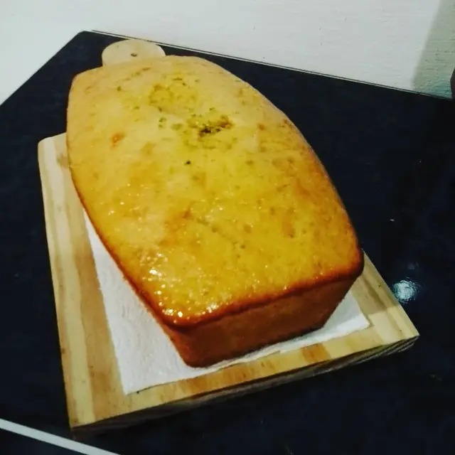 5. Ao retirar o bolo do forno ainda quente, coloque devagar um pouco de suco de laranja para entranhar na massa.