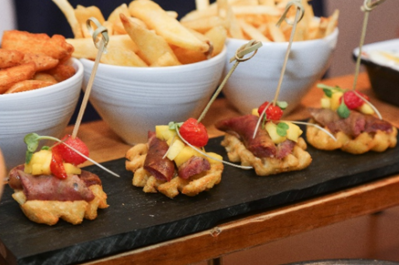 Nesta receita, a batata CrissCut crocante serve de base para a linguiça grelhada e suculenta, enquanto o vinagrete de manga traz frescor, acidez e leve dulçor. As castanhas de caju picantes entram para finalizar com crocância e personalidade, criando uma combinação equilibrada e surpreendente. Uma opção prática, saborosa e perfeita para servir como entrada em eventos, happy hours ou ocasiões especiais.