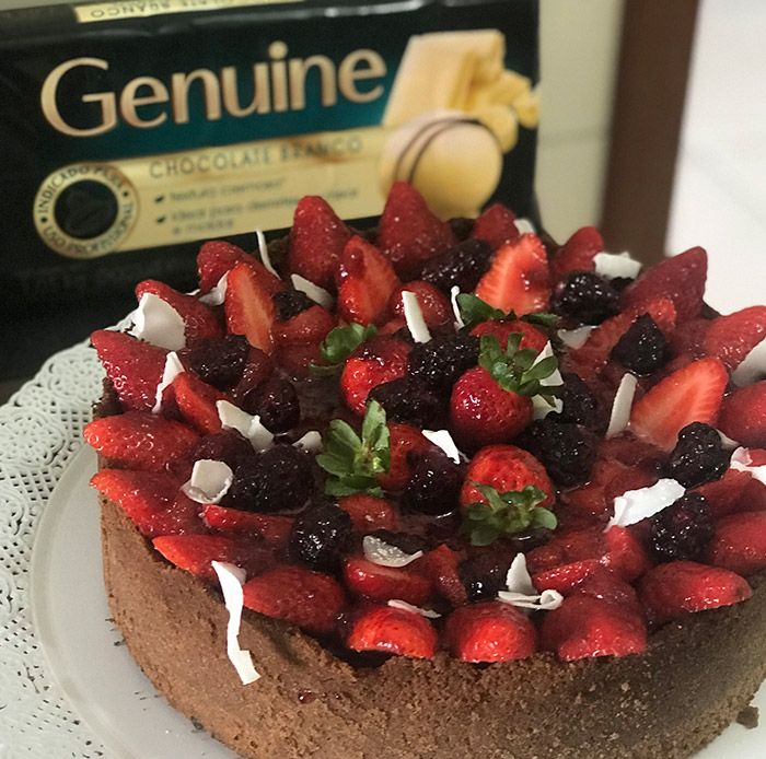Nesta receita, a base crocante de biscoito com toque de canela sustenta um creme sedoso feito com Chocolate Branco Genuine, cream cheese e baunilha, que assa lentamente até atingir a textura perfeita: firme nas bordas e delicadamente tremida no centro. Finalizado com uma calda vibrante de frutas vermelhas, o resultado é uma sobremesa elegante, equilibrada e ideal para celebrar momentos especiais com muito sabor.