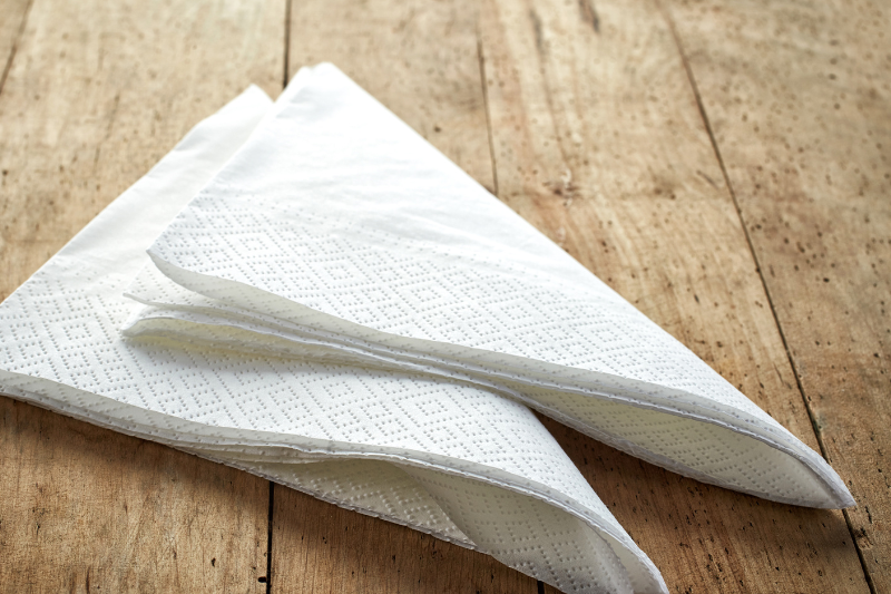 O papel toalha pode ser dobrado de diversas formas para decorar a mesa, criando um toque elegante.
