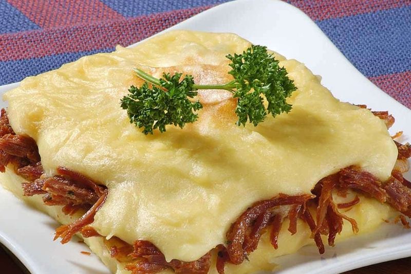11. Finalize com o restante do purê, alisando bem a superfície, e polvilhe o parmesão por cima.