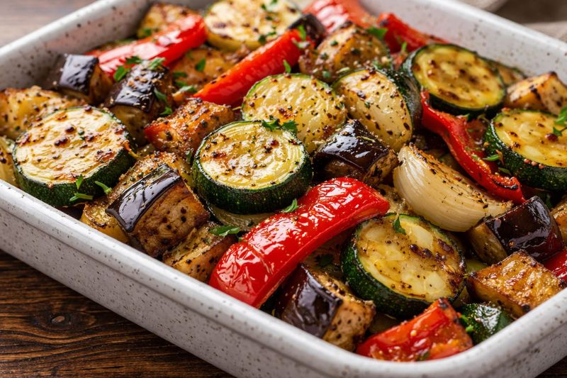 4. Leve ao forno por 20–25 minutos, mexendo na metade do tempo, até que os legumes estejam dourados e macios.