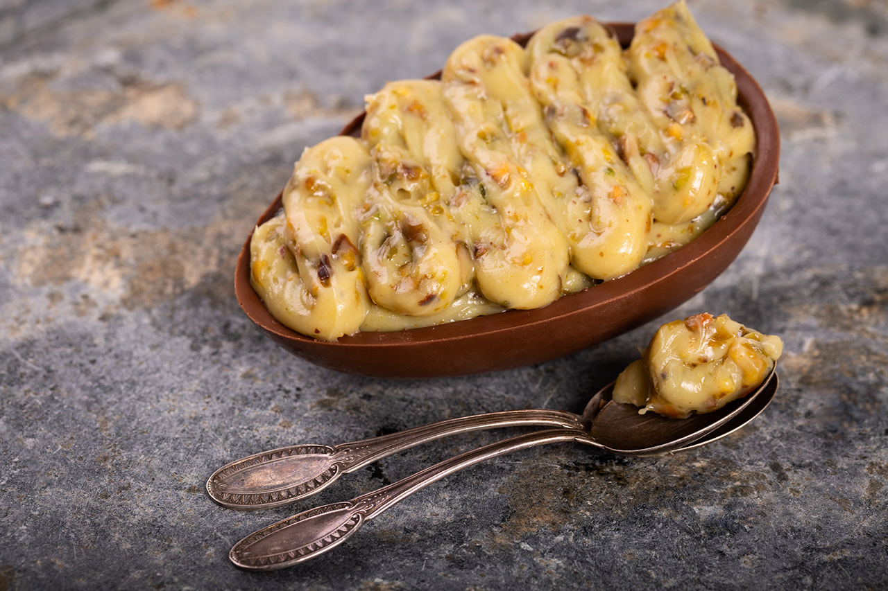 4. Pode decorar com pistache triturado ou moedas de Chocolate Genuine Meio Amargo.