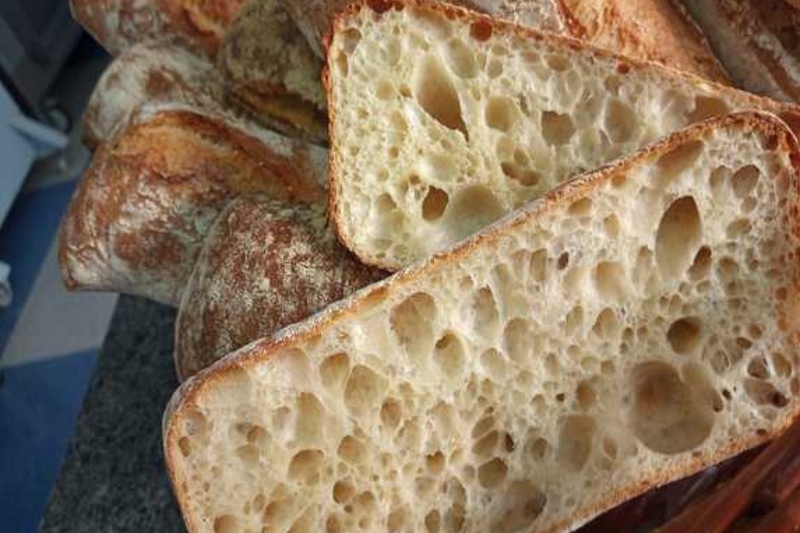 10. Cortar as ciabattas nas medidas 8X20 cm. Colocar em assadeiras apropriadas e deixar fermentar por 20 minutos.