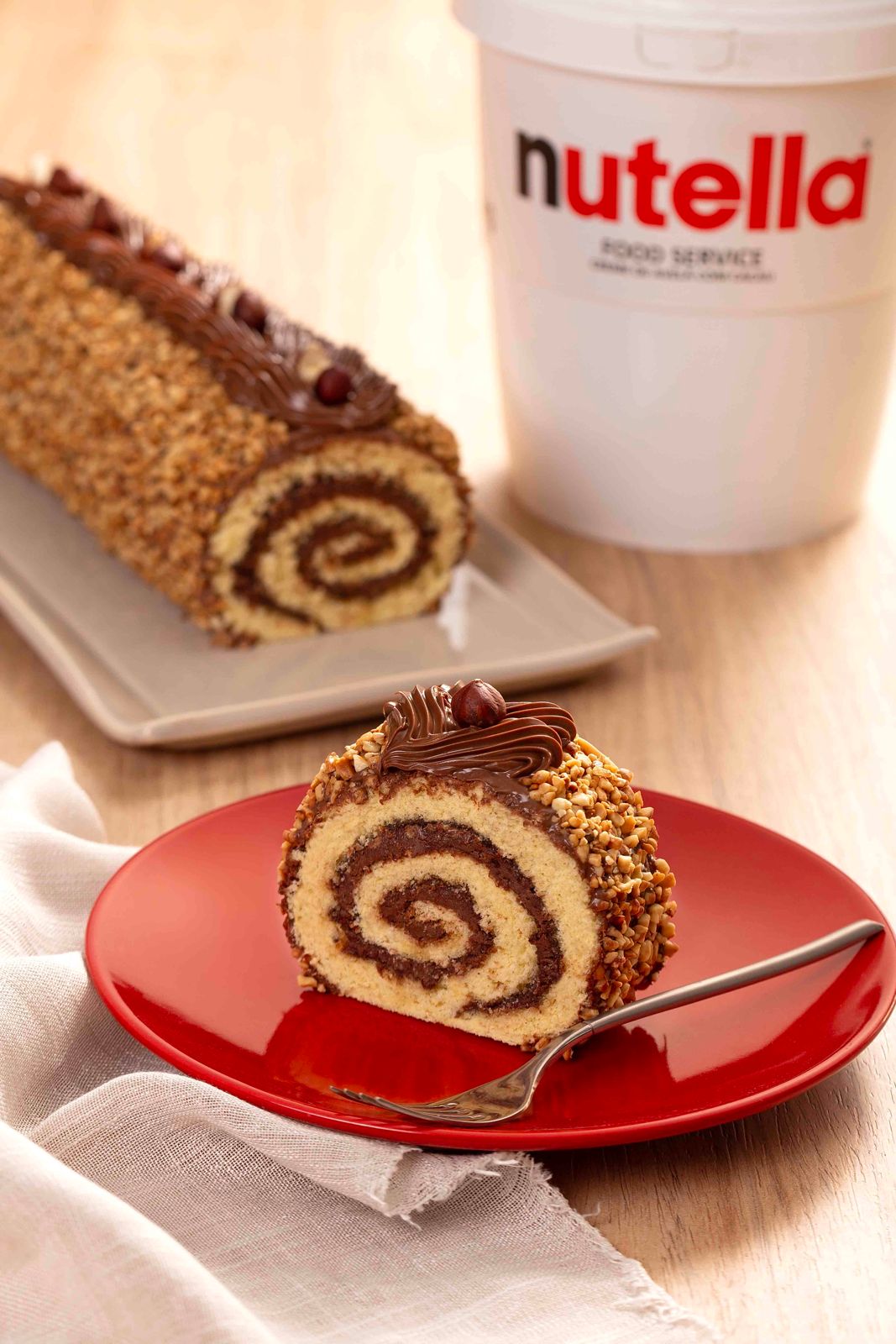 1. Passe uma fina camada da Nutella na superfície do rocambole, alisando para ficar bem uniforme.