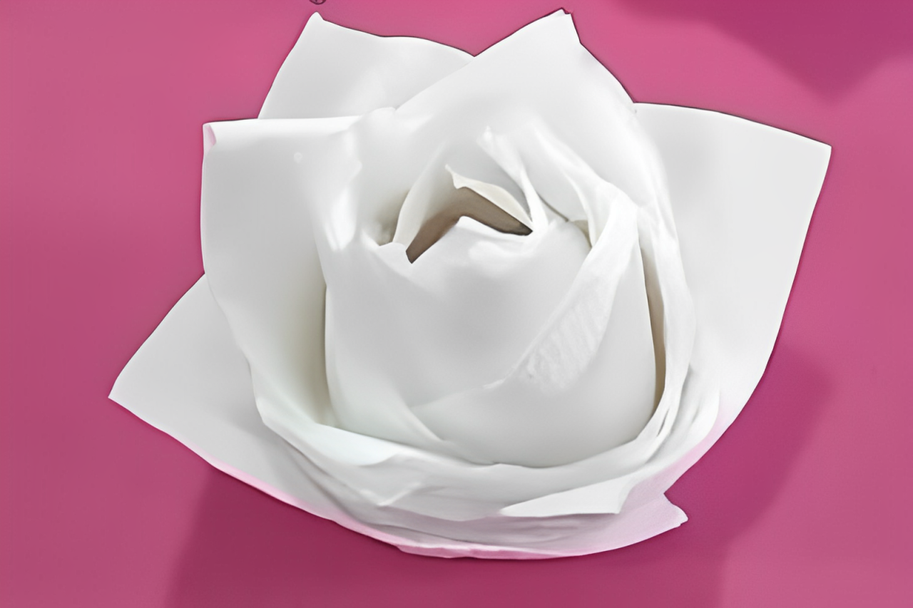 4. Depois disso vire o copo ou taça de cabeça para baixo em uma superfície plana, solte cuidadosamente dos guardanapos e esta pronta sua rosa de papel.