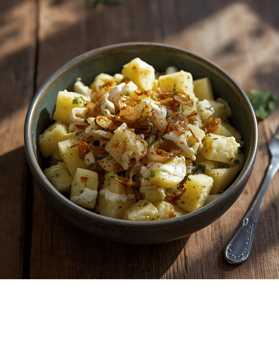 Keyword alho-poró caramelizado, Salada de Batata, Salada de Batata com alho-poró caramelizado