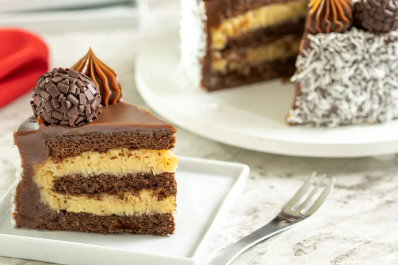 5. Por fim, finalize sua Torta Chococo aplicando 50 g de coco ralado na lateral. A torta está pronta para ser servida e apreciada!